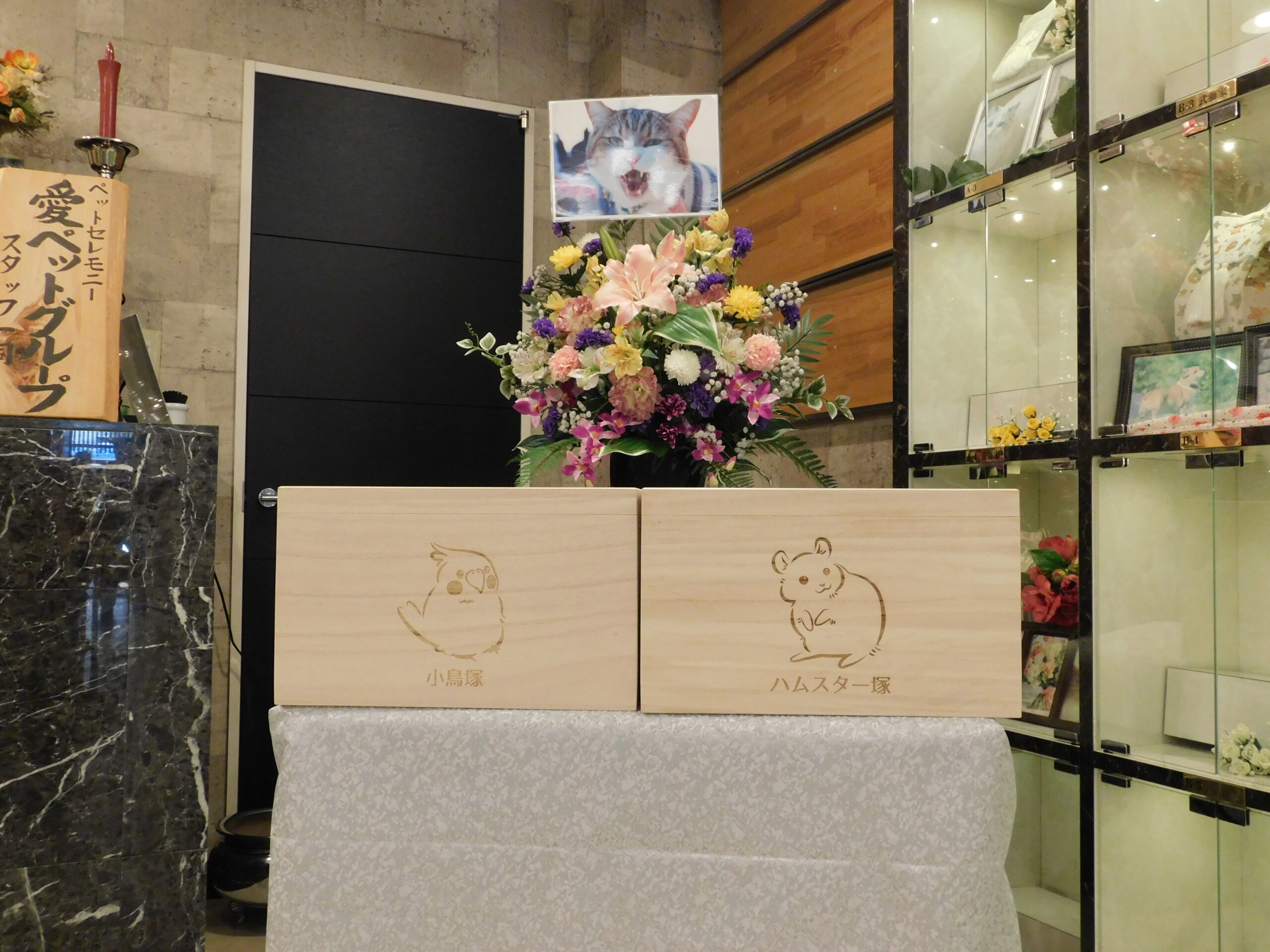 覆い(お骨壷の袋)のお着替えや、新たなお位牌や写真立てなどへのお取替えのご相談などお気軽にスタッフまでお尋ねください。